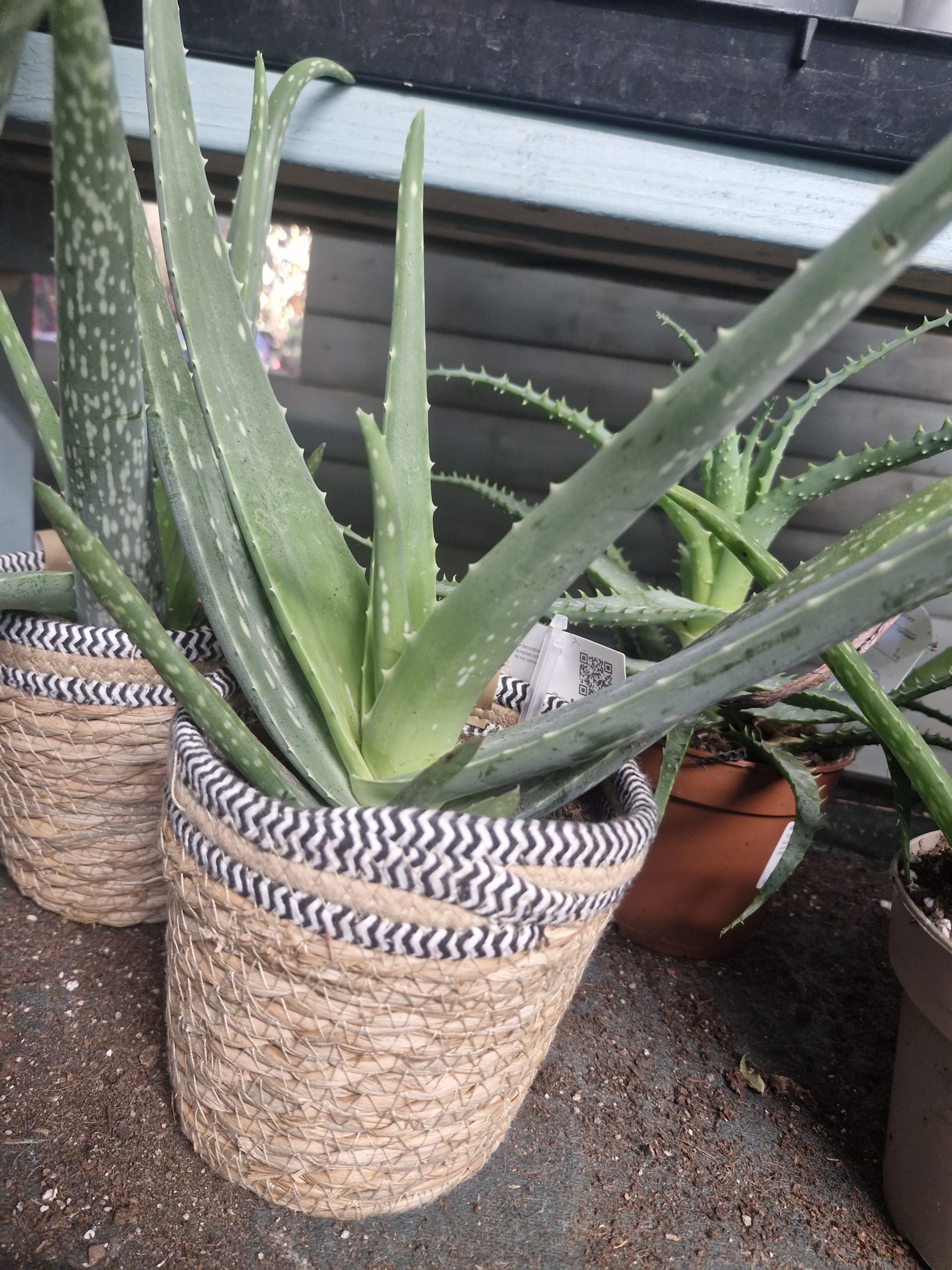 A. vera – A. vera is an upright evergreen perennial forming dull green leaves with spiny margins, and tall spikes of tubular greenish-yellow flowers in summer.