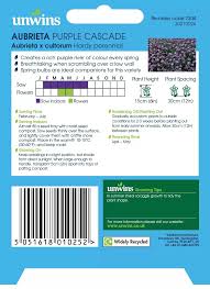 Unwins Aubrietia Purple Cascade Seeds create a colourful carpet of purple flowers. This hardy perennial returns each year, signally the start of spring when it reappears annually.