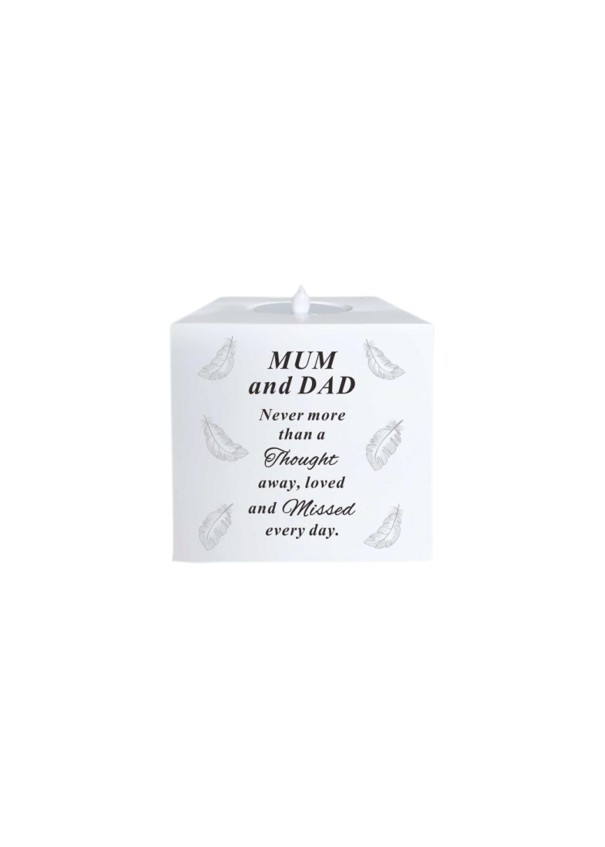 Mum&Dad Flickering Candle Holder With Feather Design