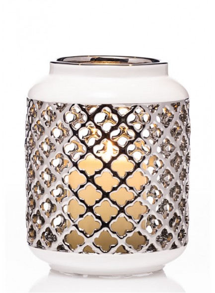 THE GRANGE COLLECTION WHITE & SILVER PILLAR CANDLE HOLDER