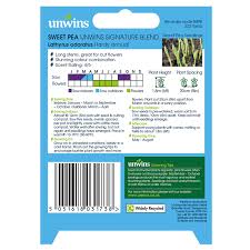 Unwins Sweet Pea Unwins Signature Blend Seeds produce beautiful sweet peas with long stems which are great for cutting. A stunning colour combination of pinks, reds and purples, the Unwins Signature Blend of sweet peas will add wonderful colour to your garden.