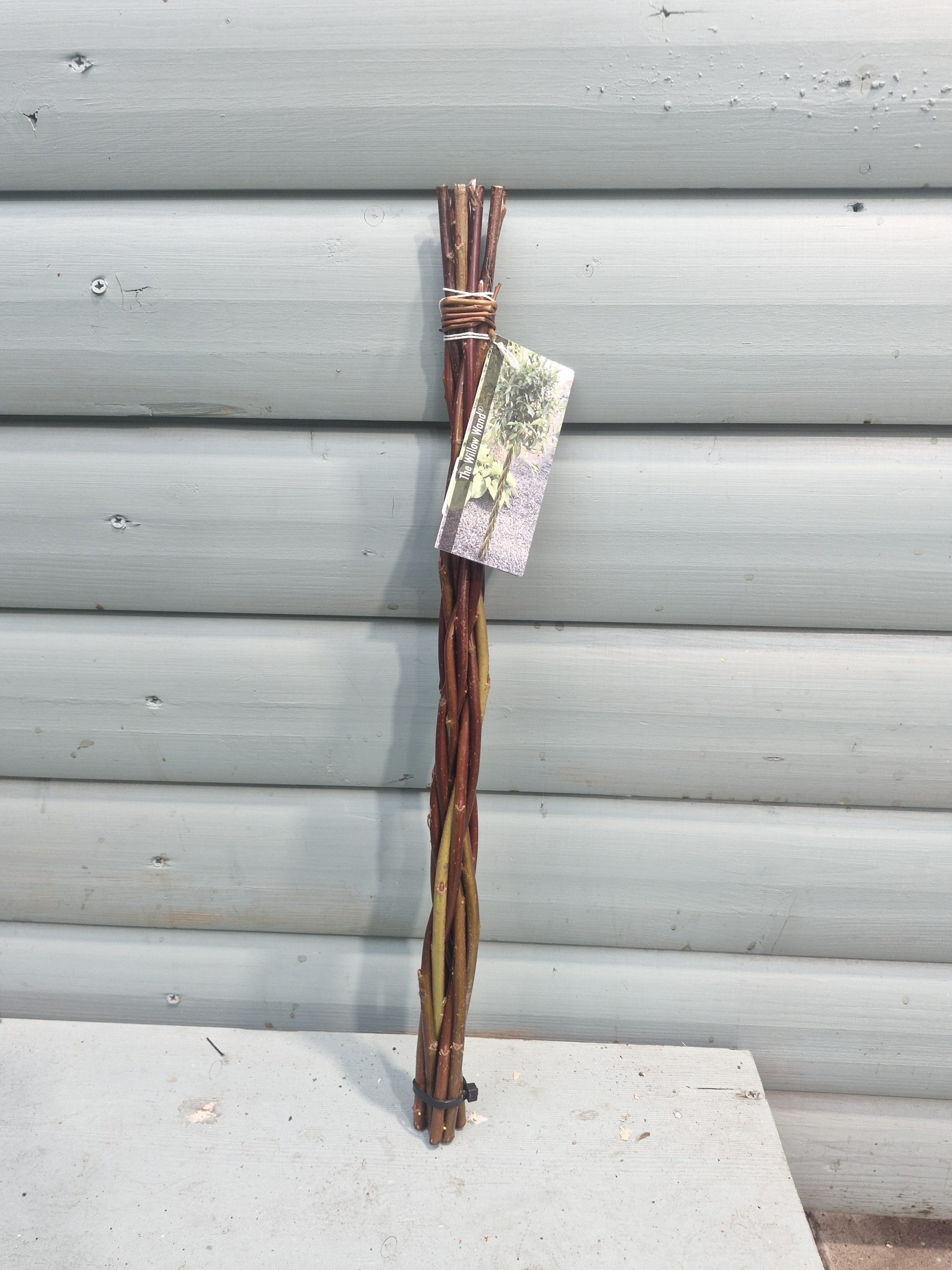 The buds which grow on the woven stem must be rubbed off regularly to maintain the twisted design. The buds which develop above the dried decorative willow band should be allowed to develop into crown growth.